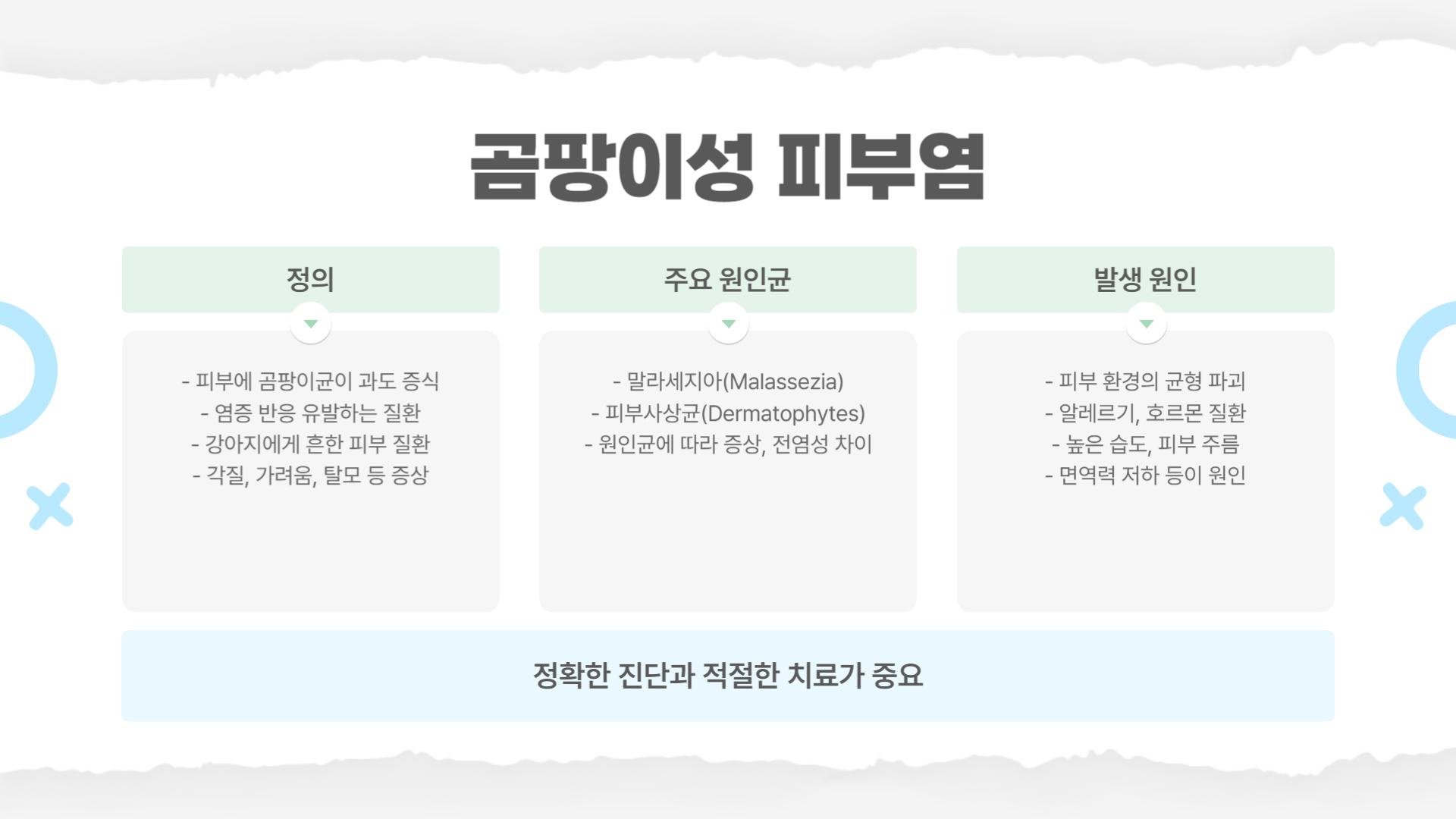 강아지 피부에 각질이 보이거나 가려움증, 탈모 등의 증상이 나타났을 때, 섣불리 "곰팡이 때문일 거야"라고 단정하고 집에서 관리하려 해서는 안 됩니다.
