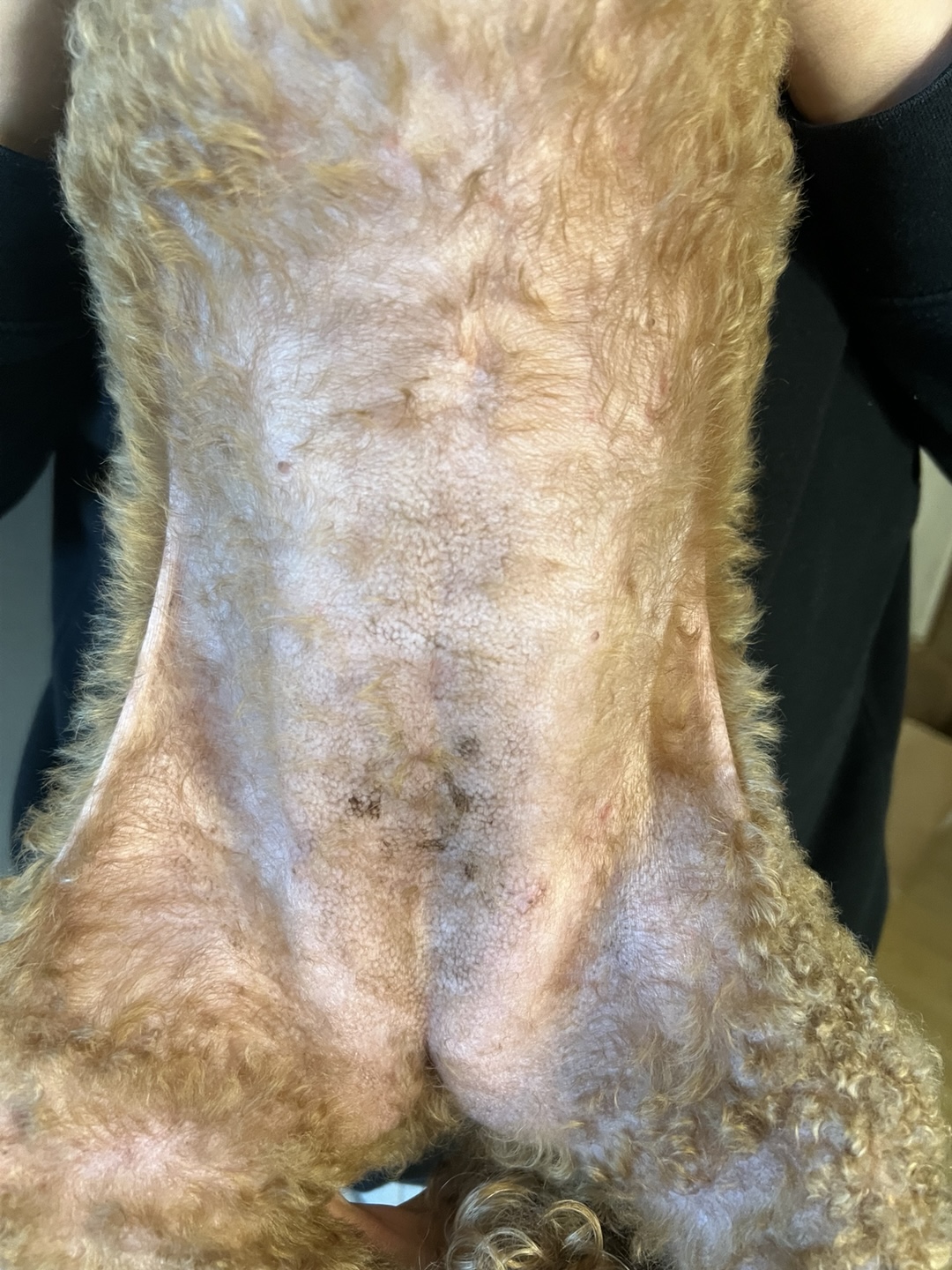 - 문진 및 시진: 보호자와의 상담을 통해 증상, 발병 시기, 생활 환경 등을 파악하고 피부 병변을 자세히 관찰합니다.