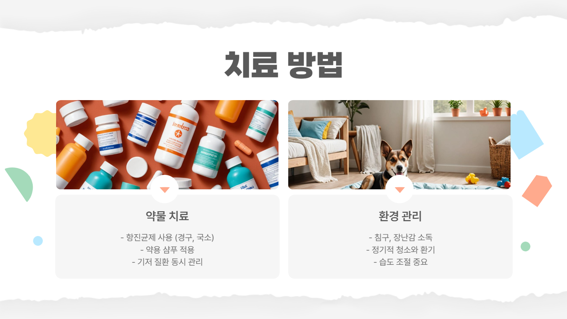 말라세지아 피부염의 경우, 원인이 되는 기저 질환(알레르기 등)의 관리 및 치료가 반드시 병행되어야 합니다.