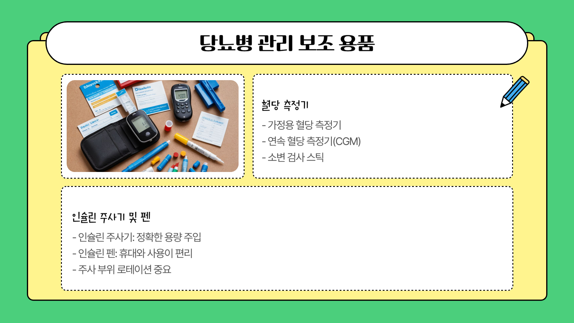 정확한 인슐린 주사와 혈당 관리를 위한 보조 용품이나 정보가 필요하시다면 관련 내용을 참고해 보세요.
