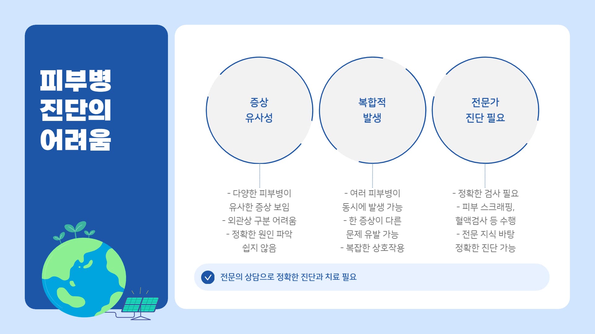 부정확한 정보에 의존한 자가 진단이나 임의적인 약물 사용은 오히려 병을 악화시키고 치료를 더 어렵게 만들 뿐입니다.