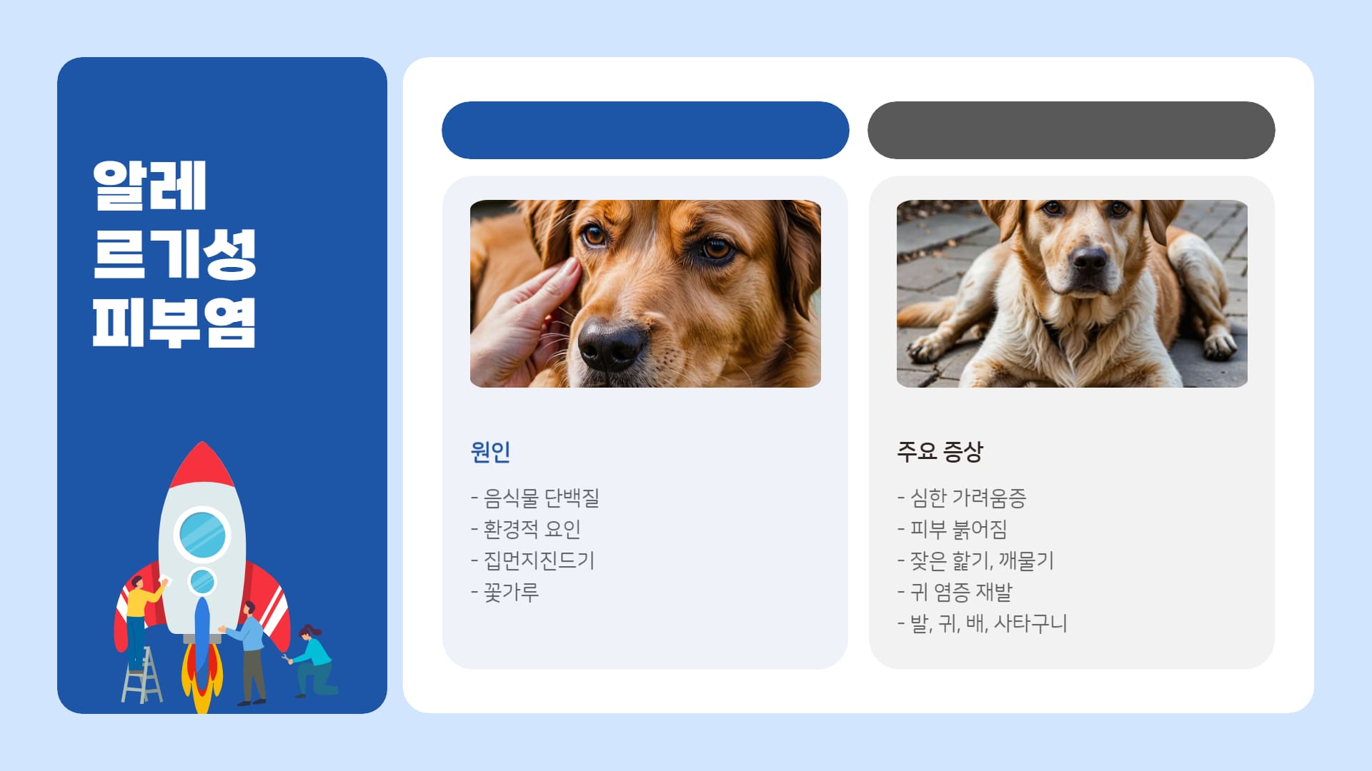반려견이 몸을 쉬지 않고 긁거나 핥는 모습, 붉게 변한 피부나 퉁퉁 부은 귀를 보면 보호자 마음은 타들어 갑니다.  강아지 알레르기는 주로 가려움, 피부 발진, 귀 염증 등을 유발하며, 정확한