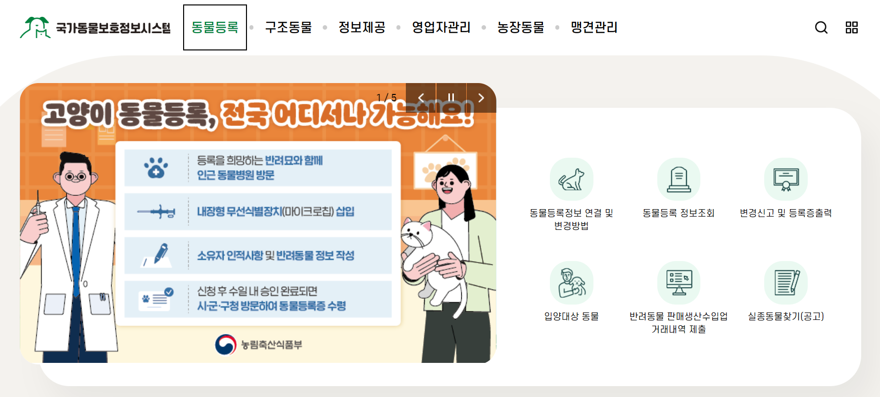 - 국가동물보호정보시스템 (www.animal.go.kr) 홈페이지 접속