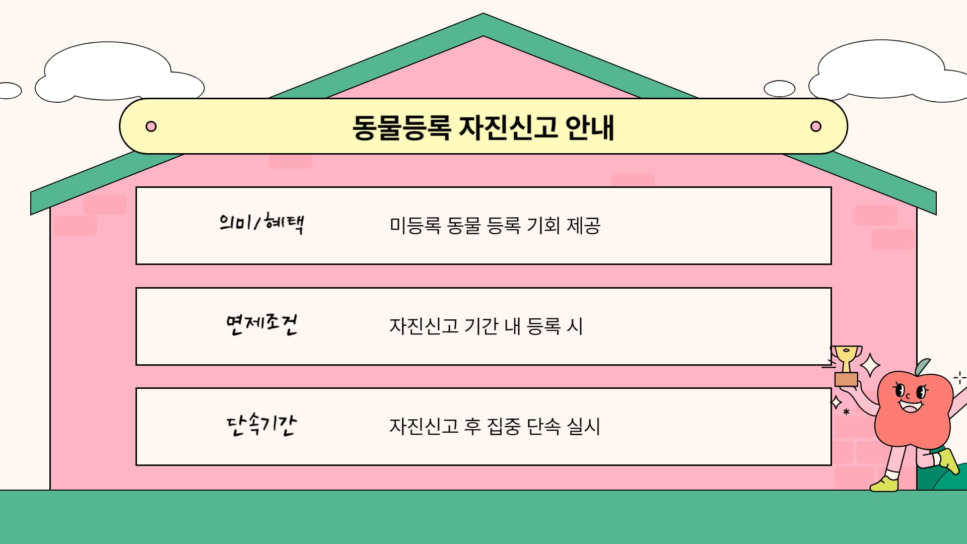 동물등록은 단순히 법적 의무를 넘어, 우리의 소중한 가족인 반려견을 지키는 책임감의 표현입니다.