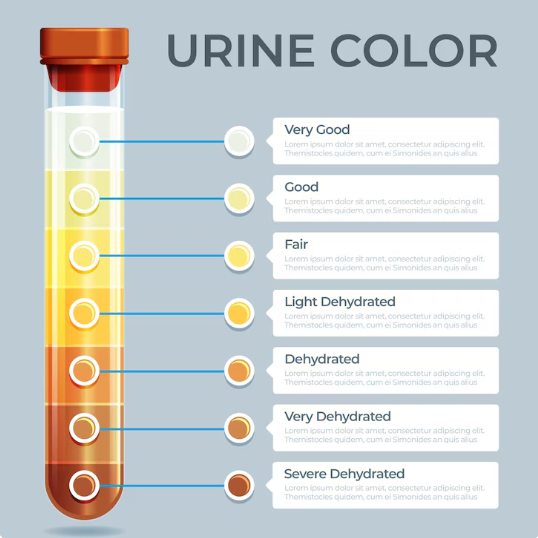 아침 첫 소변은 밤새 수분 섭취가 없어 진한 황색을 띠는 것이 정상이며, 하루 종일 충분한 물을 마셨다면 연한 레몬색이나 거의 투명에 가까운 색을 보입니다.