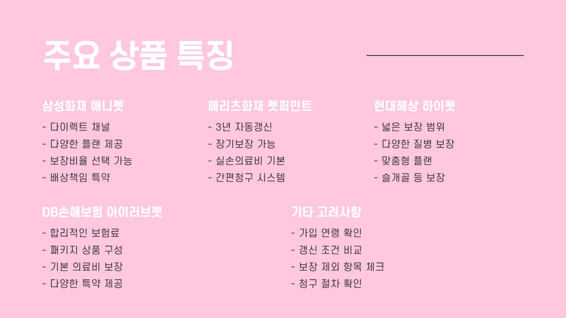 3. 주요 펫보험 상품 특징 살펴보기 (삼성/메리츠/현대/DB)